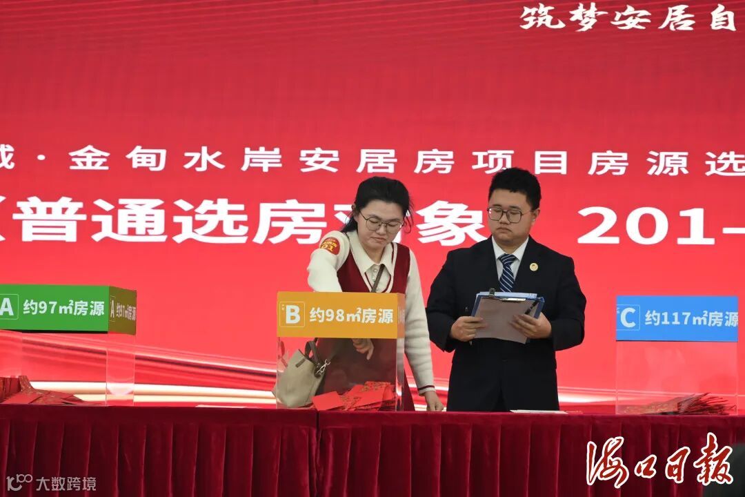 选房现场全程进行网络直播,只见选房对象贴着选房顺序号贴码,按顺序进行抽签选房,选定自己满意的房源后,现场进行签约确认。选到心仪房源的陈先生十分看重项目的区位优势,对滨水环境十分满意,此次满载而归,“很开心,在海口算是正式安家了。”他期待在海口能有一个好的事业发展,安居又乐业。据悉,此次选房活动采用分批次、分时间段组织选房对象在选房现场抽签方式确定房号。