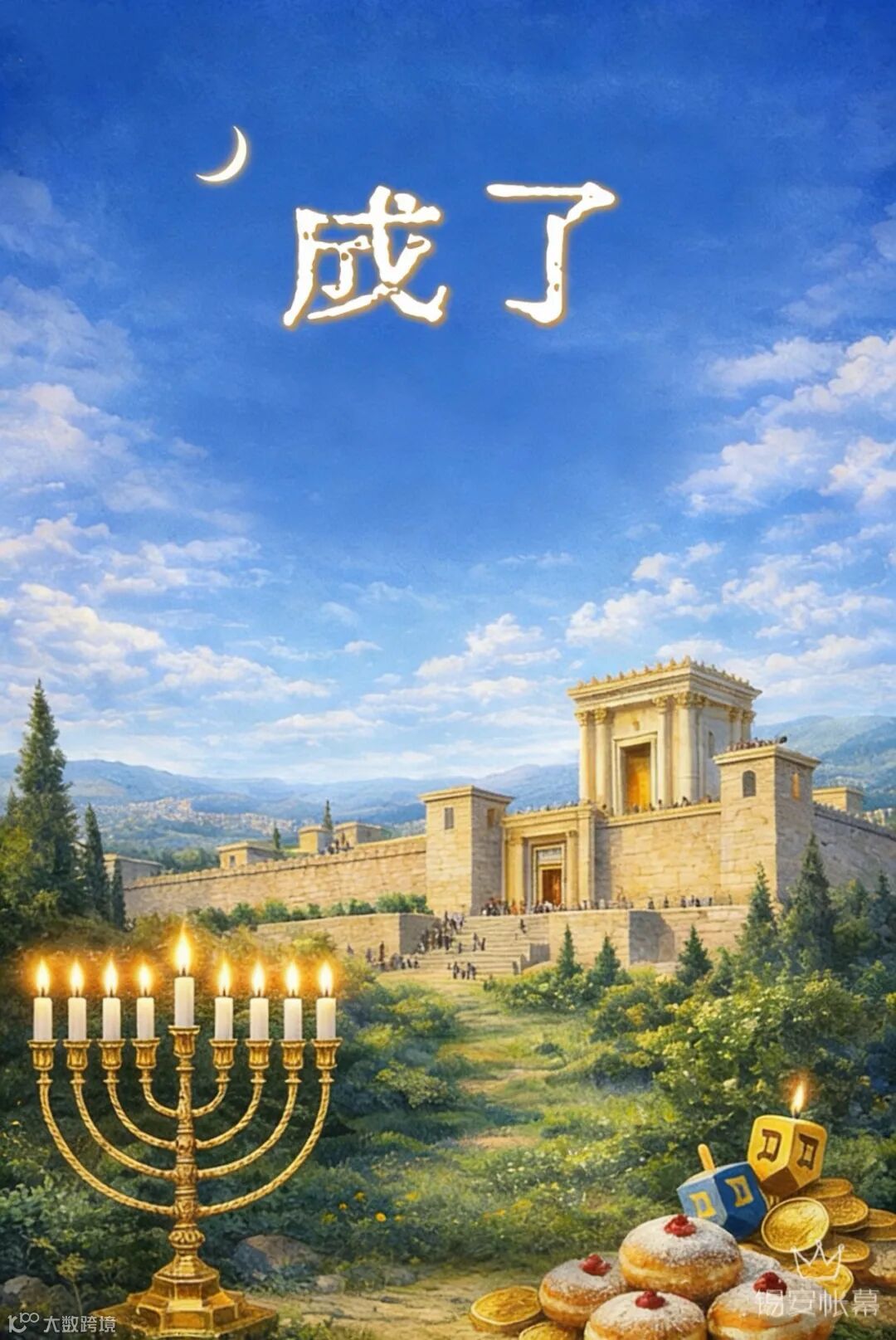 光明节的灯,是人点的;但YS是从上而来的光。圣殿被修复,预表的不是一座建筑,而是那殿、那城、那国度最终被完全恢复。因此,光明节的结束并不是终点,而是一个转折点——正好进入新的月份,正如希伯来历法中常见的模式:结束,为了更新;黑暗之后,才显明光。