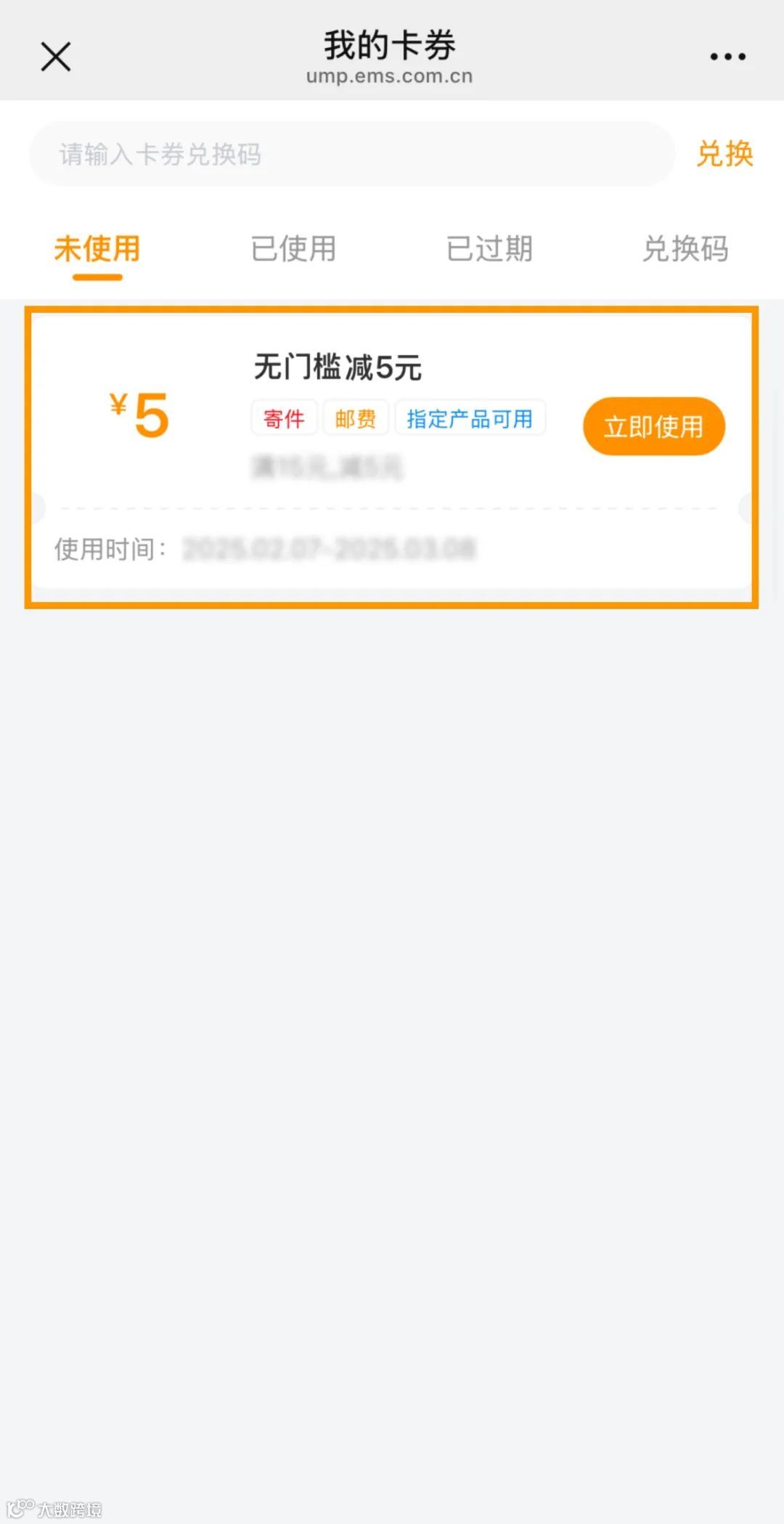 核查属实后,5元优惠券将自动发放至账户。用户可在EMS公众号“我的—优惠券”中查看。