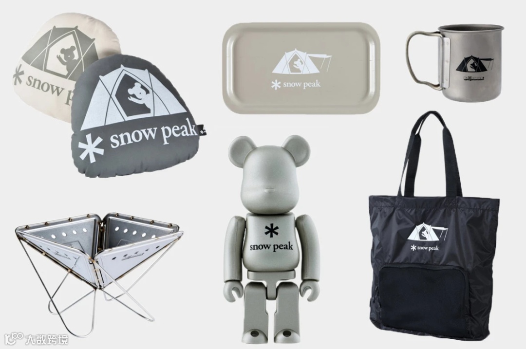2017年,日本高端户外生活方式品牌 Snow Peak 与 BE@RBRICK 进行了联名合作,除了玩偶之外,双方合作的产品还包括:焚火台、T恤、便携式托特包、帐篷、马克杯、木质托盘、帆布靠枕、雪花球等等。这一系列在日本、中国台湾、韩国有售。