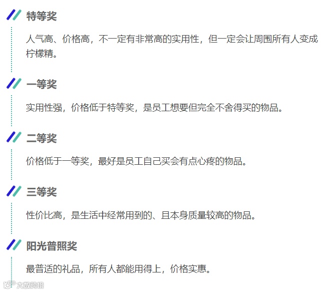 将年会礼品划分成不同的等级。