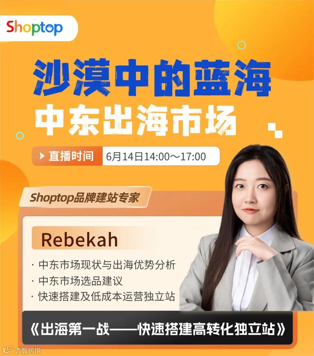 6月14日,Shoptop联合大卖知识产权×维卓,开展了“沙漠中的蓝海—中东出海市场”主题的线上直播活动,全方位破冰跨境新领域,从建站、社媒营销、知识产权等多方面详细解读出海中东策略。