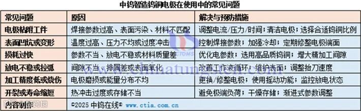 钨铜电极在使用中常见问题主要源于焊接/放电参数不当、表面维护不足以及工况极端导致的粘附、损耗和不稳定现象。这些问题若未及时处理,会造成焊点质量下降、加工精度降低或电极过早失效,尤其在电阻焊镀锌板或EDM精加工时更易出现。通过合理选配钨铜比例、严格控制参数、加强清洁与冷却,以及定期修整和检查,可有效预防大多数故障。规范操作和预防性维护是提高电极长寿命和高稳定性的关键,适用于高频精密作业场景。