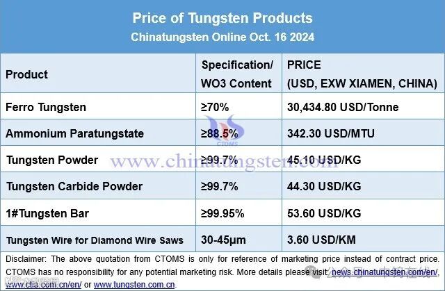Analysis of latest tungsten market from Chinatungsten Online China tungsten prices are showing signs of rising, and the macro policy is warming and the supply at the mine end is tight, which boosts the market's bullish view. Tungsten market transactions are still slow, and the effectiveness of macro policies and the progress of demand recovery need time to verify. In the tungsten concentrate market, the fundamentals maintain a tight supply and demand situation, and there are many positive signals at the macro level. Short-term holders are more willing to sell and support the market. The price of 65% black tungsten concentrate is testing above $20,290.0/ton. In the ammonium paratungstate (APT) market, the difficulty of raw material replenishment has increased, and the downstream demand support is poor. In the short term, merchants' quotations are strong, and the APT price is testing the $343.9/mtu mark, and the transaction atmosphere is insufficient. In the tungsten powder market, market cost support has been strengthened, and the pressure of shipment still exists. Trading sentiment is released on demand, and the market center of gravity has slightly risen. The price of tungsten powder is about $45.1/kg, and the price of tungsten carbide powder is about $44.3/kg. In the ferro tungsten market, the recent macro and cost-side positive drivers have strengthened, and there has been no significant increase in demand. New orders in the market follow the market, and the price of 70% ferro tungsten has consolidated at the level of $30,434.8/ton. In the scrap tungsten market, the improvement in the sentiment of the raw material market has boosted the intention of holders to support the market, but the expectation of improvement on the demand side is not strong, and the overall trading atmosphere remains cautious. In terms of macro, according to the data of the central bank, at the end of September, the balance of broad money (M2) was 309.48 trillion yuan, a year-on-year increase of 6.8%. The stock of social financing scale was 402.19 trillion yuan, a year-on-year increase of 8%. In the first three quarters, the cumulative increase in social financing scale was 25.66 trillion yuan, 3.68 trillion yuan less than the same period last year. The RMB loans issued to the real economy increased by 15.39 trillion yuan, a year-on-year decrease of 4.13 trillion yuan. General Administration of Customs: In the first three quarters, the total value of my country's import and export of goods was 32.33 trillion yuan, breaking 32 trillion yuan for the first time in the same period in history, an increase of 5.3% year-on-year. Among them, exports were 18.62 trillion yuan, up 6.2%; imports were 13.71 trillion yuan, up 4.1%; and the trade surplus was 4.91 trillion yuan. my country's total imports and exports with countries participating in the construction of the "Belt and Road" were 15.21 trillion yuan, up 6.3% year-on-year.