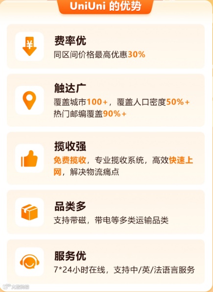 UniUni 在尾端配送领域的专业能力还将体现在服务质量方面。全量上架后,Temu 可以引入 UniUni 的高标准服务体系[3],改善包裹跟踪准确性、客服响应速度等细节,从而全面优化整体服务质量。