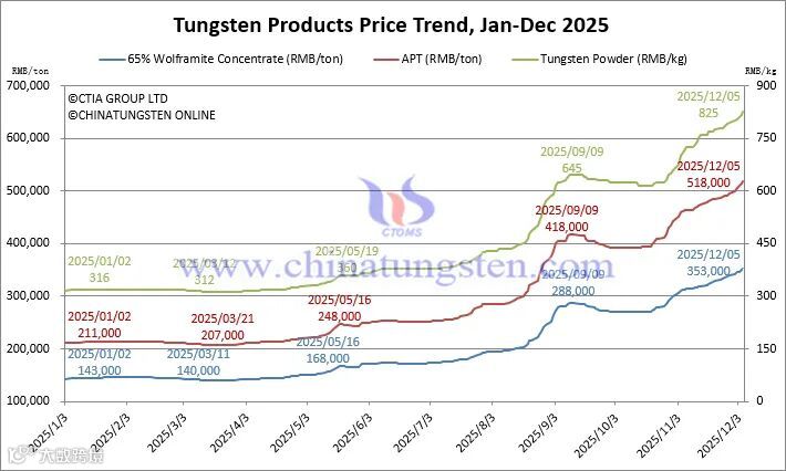 Tungsten prices continued their strong upward trend this week, driven by market concerns about tight raw material supply, confidence in rigid demand, and a consensus on the increasing value of strategic resources. The firm long-term purchase prices of tungsten enterprises at the beginning of the week further boosted market sentiment for further price increases.