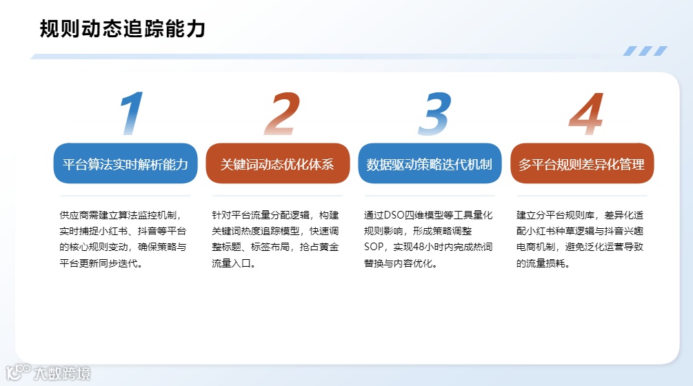 供应商需具备 “规则动态追踪+策略快速调整” 能力。例如:深耕小红书需熟悉2025年算法核心,掌握关键词黄金布局位;专注抖音需精通DSO四维模型,懂热词筛选工具与POI优化技巧。