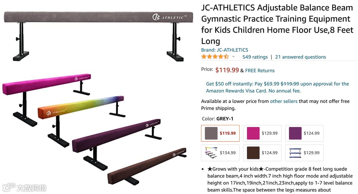 值得注意的是,在销售额整体呈下滑态势的赛事期间,有一款冷门体育器材——儿童平衡木的销售额逆势上涨,增长了5%;结合赛事成绩可以推断出增长原因,美国体操运动员Suni Lee等获得了奖牌,鼓舞了希望孩子加强体操锻炼的家长的信心。