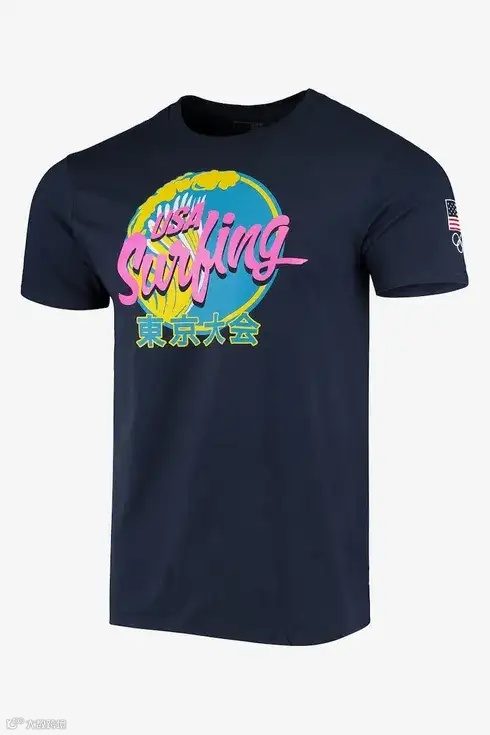 值得一提的是,官方推出的T恤中也有销量表现十分突出的产品——代表美国冲浪队的T恤,它长这样: