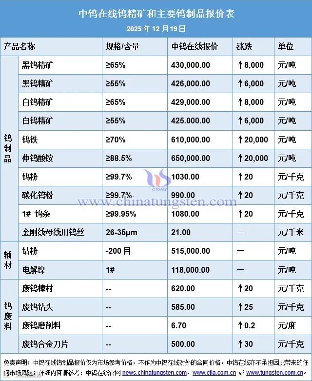本文信息由中钨在线®根据各方公开的资料和新闻收集编写,仅为向本公司网站(www.ctia.com.cn,news.chinatungsten.com)、微信公众号关注者提供参考资料。任何异议、侵权和不当问题请向本公众号反馈,我们将立即予以处理。未经中钨在线授权,不得全文或部分转载,不得对文件所载内容进行使用、披露、分发或变更;尽管我们努力提供可靠、准确和完整的信息,但我们无法保证此类信息的准确性或完整性,本文作者对任何错误或遗漏不承担任何责任,亦没有义务补充、修订或更正文中的任何信息;本文中提供的信息仅供参考,不应被视为投资说明书、购买或出售任何投资的招揽文件、或作为参与任何特定交易策略的推荐;本文也不得用作任何投资决策的依据,或作为道德、法律依据或证据。