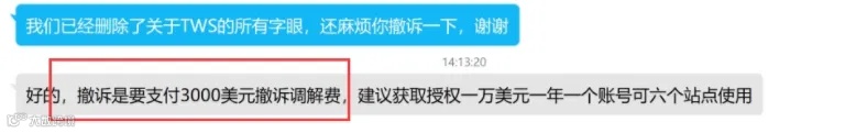 对于这么一块“肥肉”,无良同行自然不会放过。之前就曾有人抢注TWS商标(TWS是True Wireless Stereo的简称,意为真无线,被广泛应用在耳机、蓝牙音箱等产品),并对使用该词汇的卖家发起恶意投诉,还以撤诉为由勒索3000美元的撤诉调解费及一万美元授权费。
