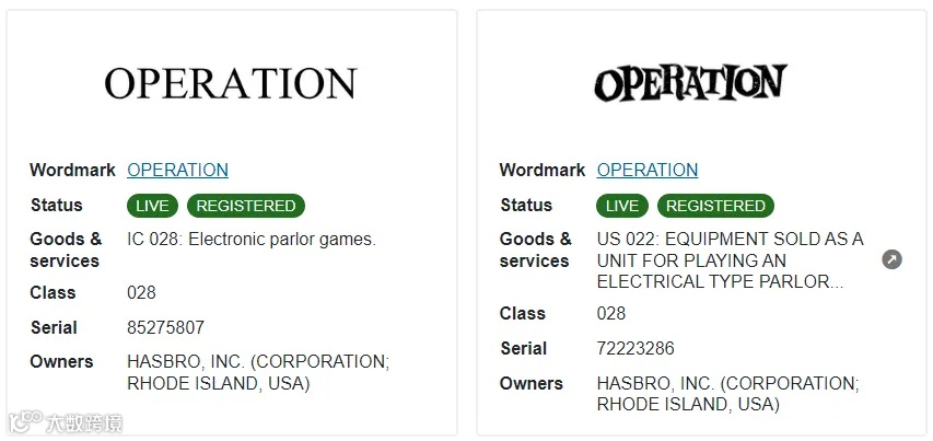 这并不全是亚马逊乱来,查询发现,引发扫号风波的词汇多多少少都已被注册商标,比如牵涉众多卖家的operation、durable,一个早在1996年就已被美国玩具巨头HASBRO, INC.公司注册,另一个则被注册在多个类目。