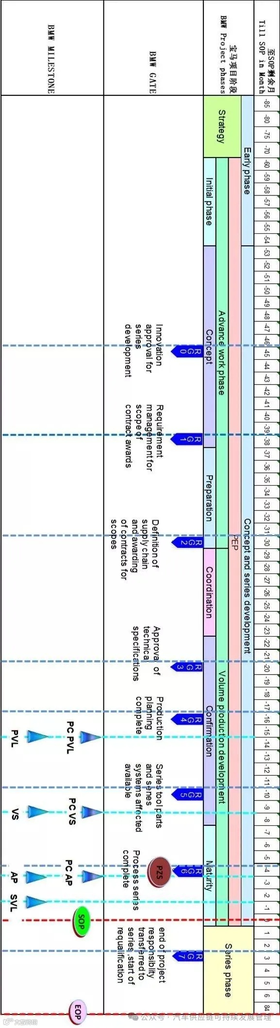 Months before series start 量产前N月。