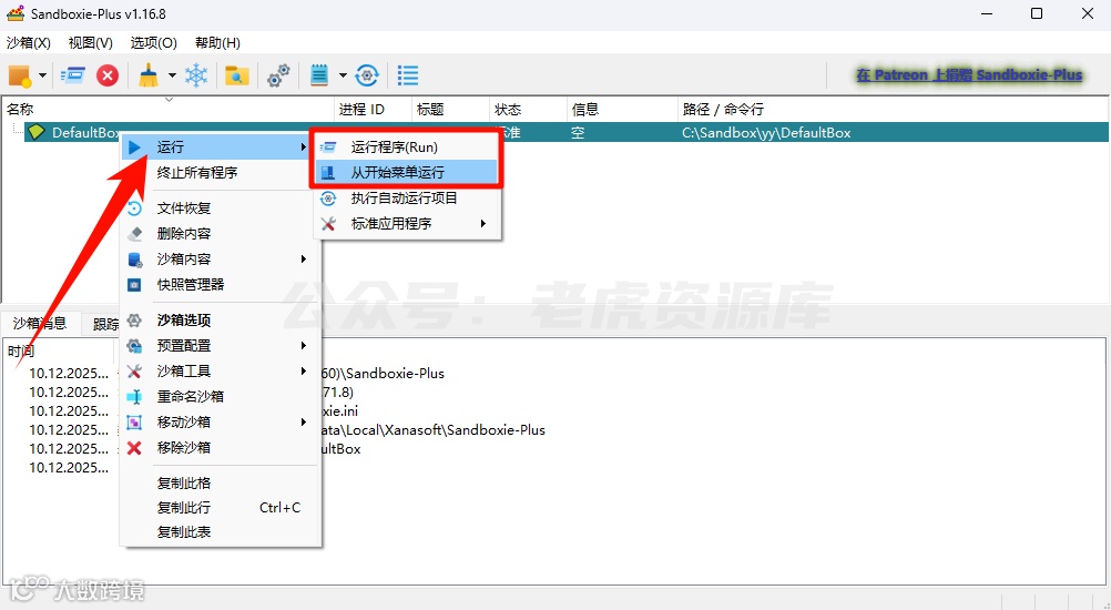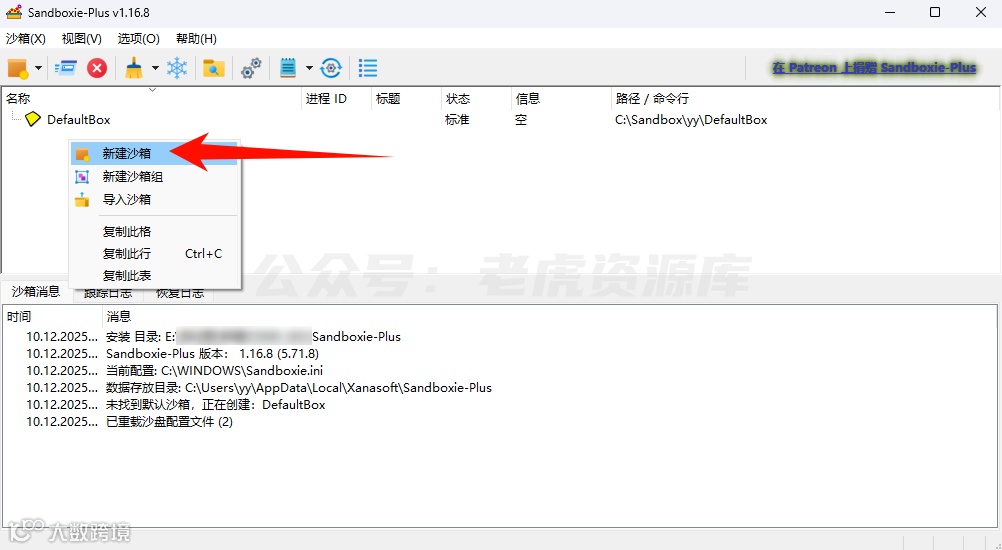 软件自带一个默认沙箱,你可以直接使用,或者用鼠标右键新建一个沙箱,然后再次右键这个沙箱,选择运行即可!