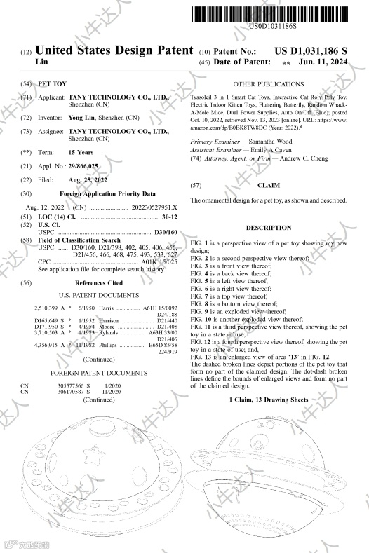 经查询,这款产品于2022年8月25日在美国进行外观专利申请的提交,于2024年6月11日获得了公告。