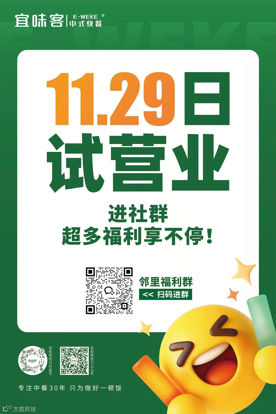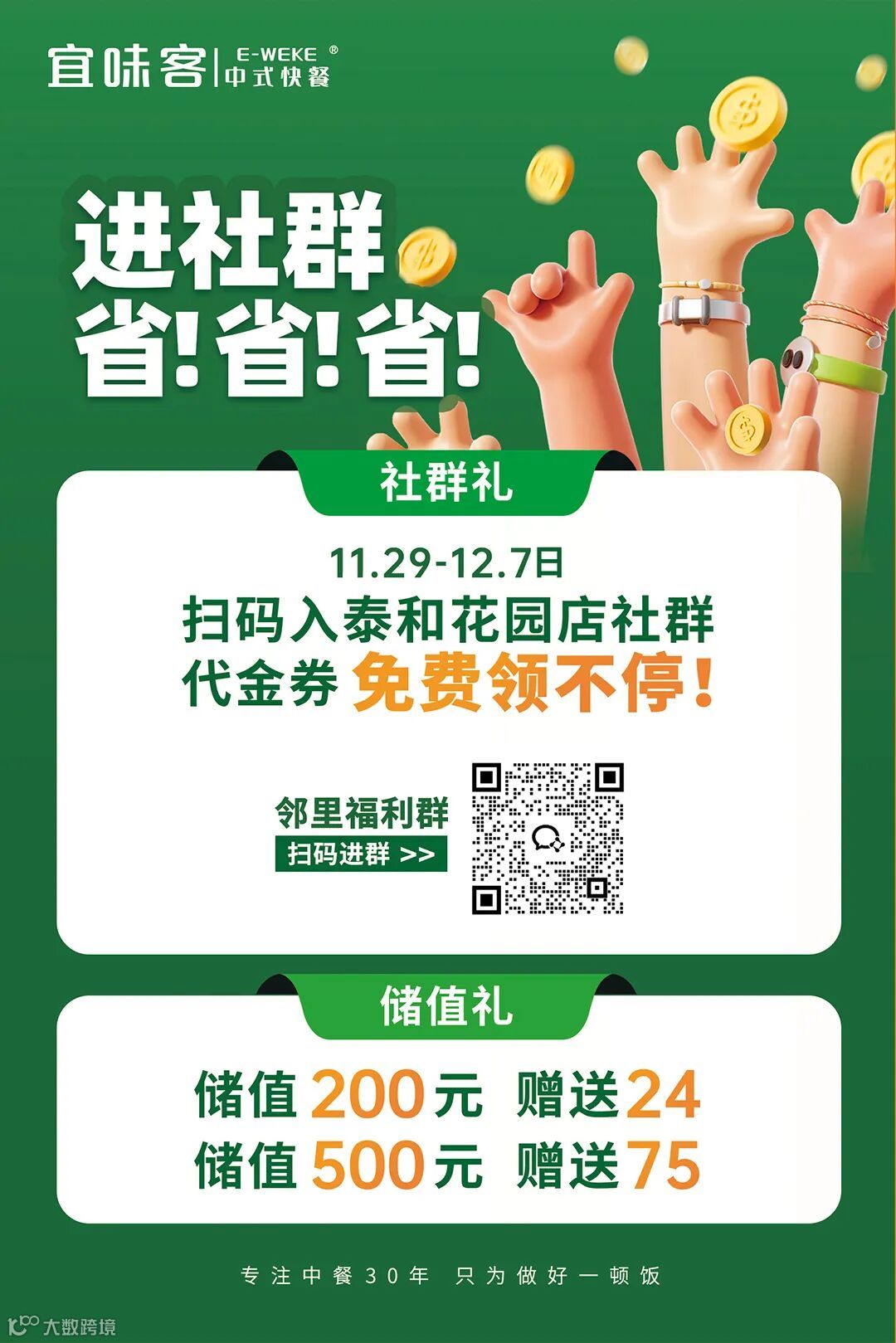 为方便大家享用宜味客的美味,新店将在社群平台发放海量会员福利券,赶快长按识别二维码进群领取吧!