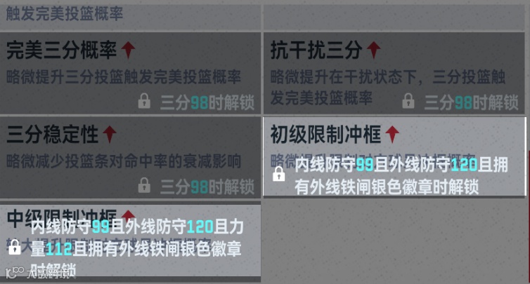 防守类:12枚防守徽章一应俱全,【灵蛇出动】【不动如山】【不知疲倦】,真正实现何为全能防守人,何为DPOY的压迫力。