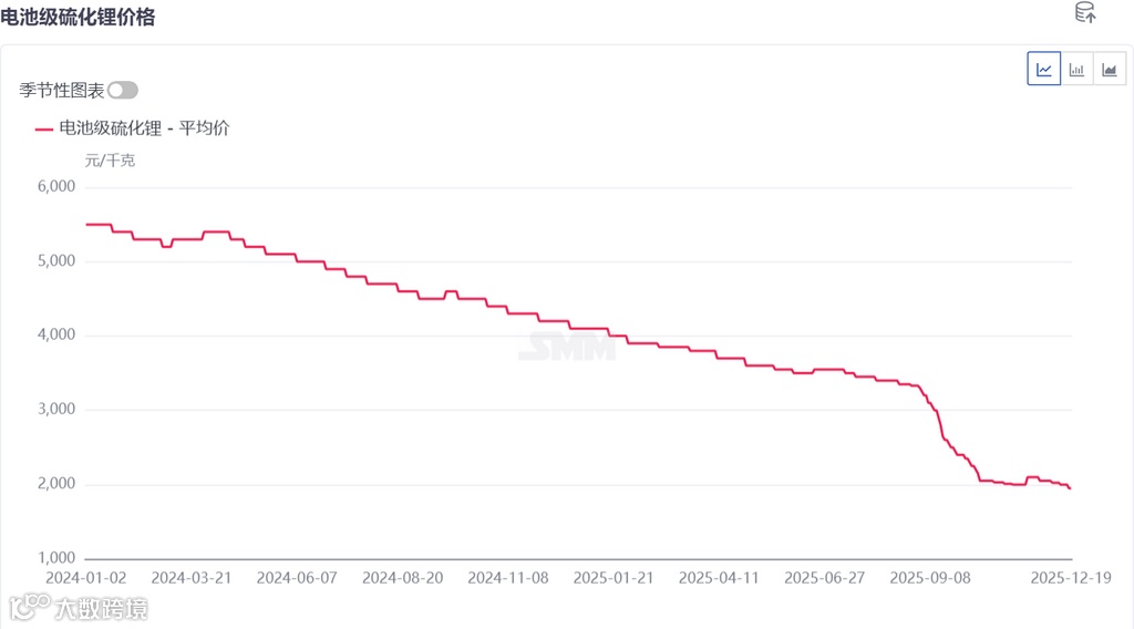 本周硫化锂价格稳中下行,各硫化锂企业开工率较高,出货以小单为主,均价在1950元/千克。
