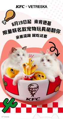 图源:VETRESKA品牌还擅长通过跨界联名扩大影响力:与肯德基合作推出猫抓桶,与美妆品牌Miss Candy推出宠物友好指甲油,甚至联名Manner咖啡打造宠物主题快闪店,将品牌符号渗透至多圈层。