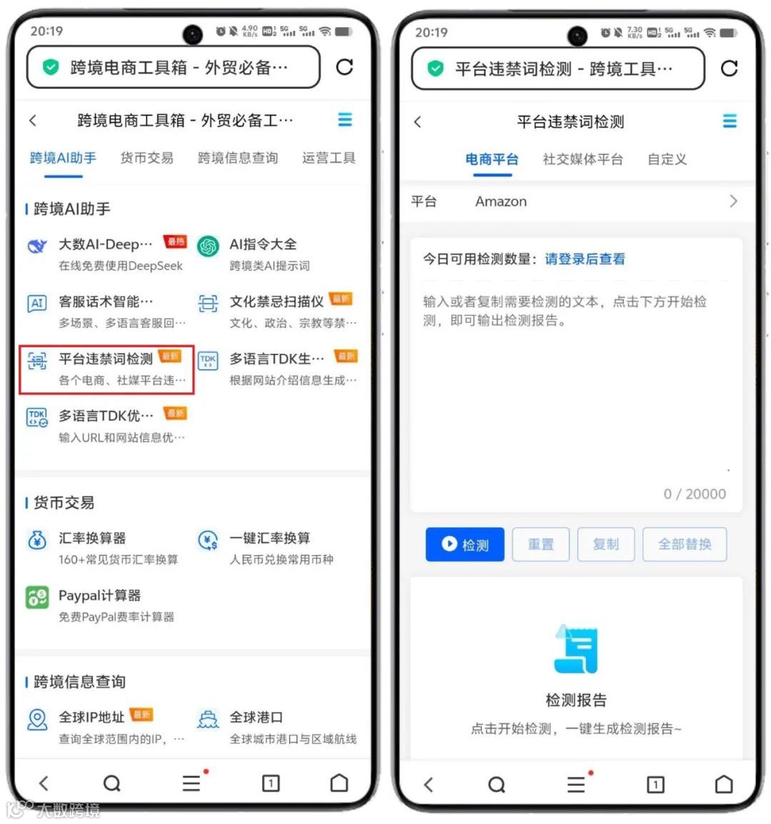大数跨境上线了新的小工具【平台违禁词检测】就可以完美的解决这个问题!