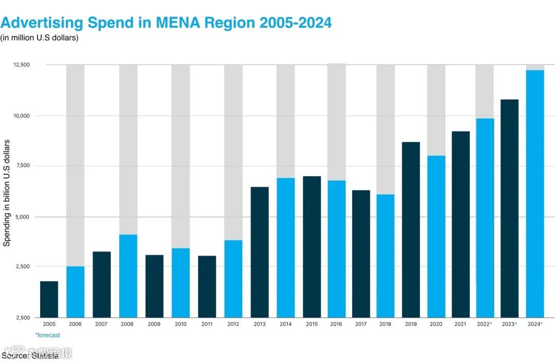 中东和北非 (MENA) 地区的广告业正在经历重大转型。预计到 2024 年,广告支出将超过120 亿美元,较 2021 年的约 92 亿美元大幅增加。这表明 MENA 地区的广告领域具有巨大的增长潜力。