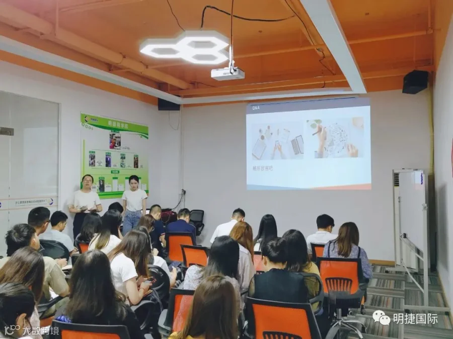 经过了前面大王还有我们两位负责人对产品地精心讲解,明捷小包产品发布会也即将迎来了尾声,结尾是由我们的营销总监大山对我们解说他对小包产品的理解,对本次新推出的产品也是自信满满,再一次鼓舞了台下明捷将士们的士气!让我们朝着共同的目标一起前进吧!