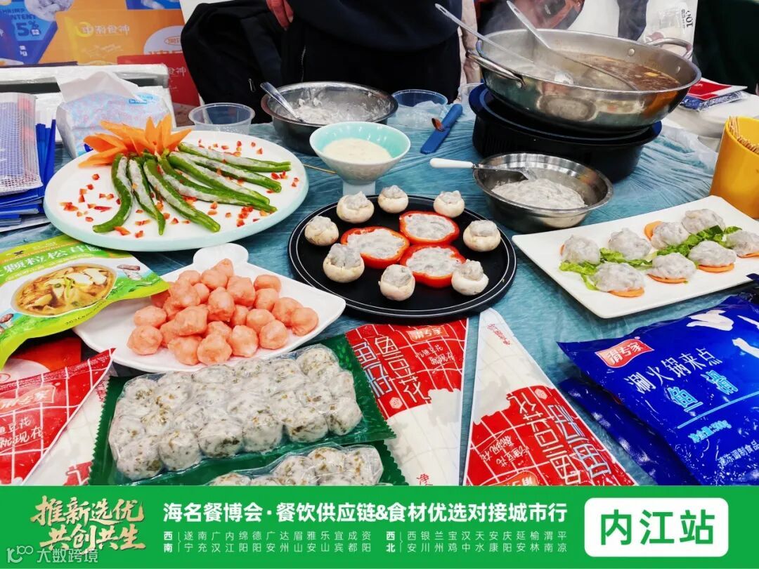 本次活动汇聚了四川、江苏、河南、广东、安徽、贵州、江西及广西等近10个省、自治区的前沿厂家,携数百款明星大单品亮相内江:如美味来、清香厨、珍虾客、丹丹 火娃、鑫宴、小锦渔、新广厦、万洋、金磨郎、穆瑞鑫、海边小镇、仟味高汤、九洲禾鲜、花果山、圆皓卓豪、顺鑫、彭歌、爱华肴等供应链企业,围绕中餐、火锅、烧烤、小吃、快餐等核心场景需求,展示了调味品、火锅烧烤食材、预制食材、水产、肉禽、饮品、餐饮设计等百款新品爆品、新技术、新模式,助力餐饮企业推新选优,降本增效!