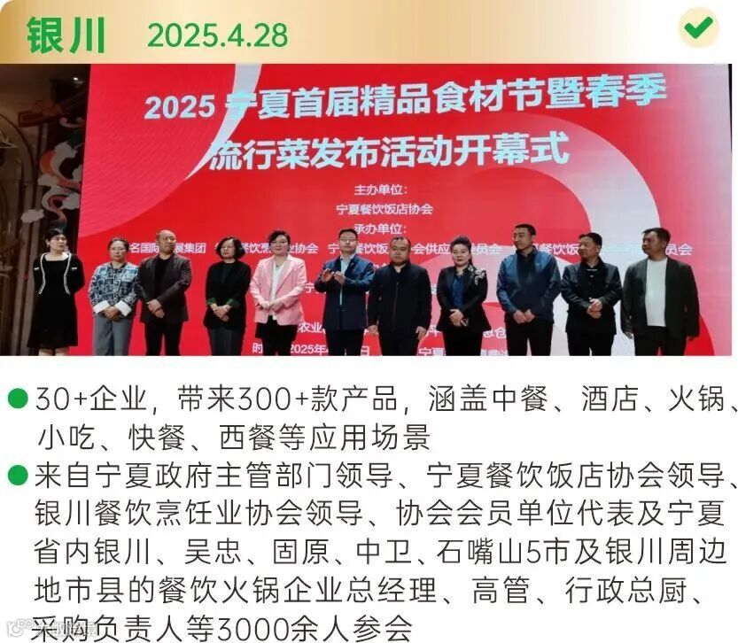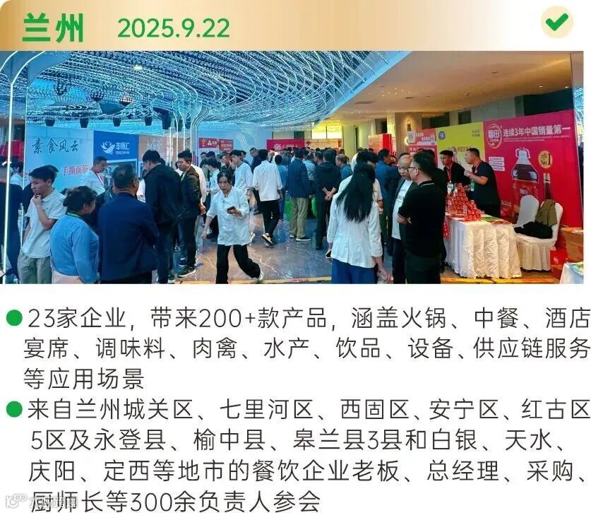 餐饮供应链&食材优选对接城市行12月26日将继续走进甘肃庆阳,为当地餐企搭建更高效、更便捷的资源对接平台。期待与您下一站再相逢!