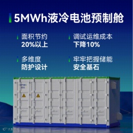 德赛电池20尺集装箱储能系统装电量可达到3.35MWh、5MWh,基于1500V平台设计,电池包安全防护可达到IP67,通过液冷散热。