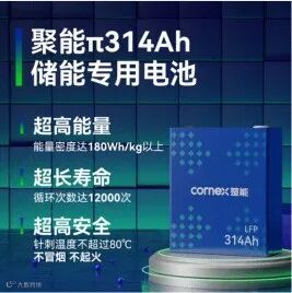 楚能新能源自主研发的聚能π314Ah超长循环电池,通过采用全新碳包覆技术,前驱体修饰工艺,使用耐高温电解液打造了“长寿命、强安全、高能效”三大技术利刃,率先实现了电池寿命突破20年。