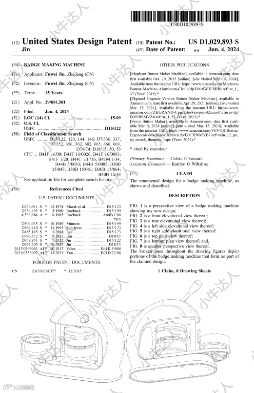 经查询,这款产品于2023年1月4日在美国进行外观专利申请的提交,于2024年6月4日获得了公告。