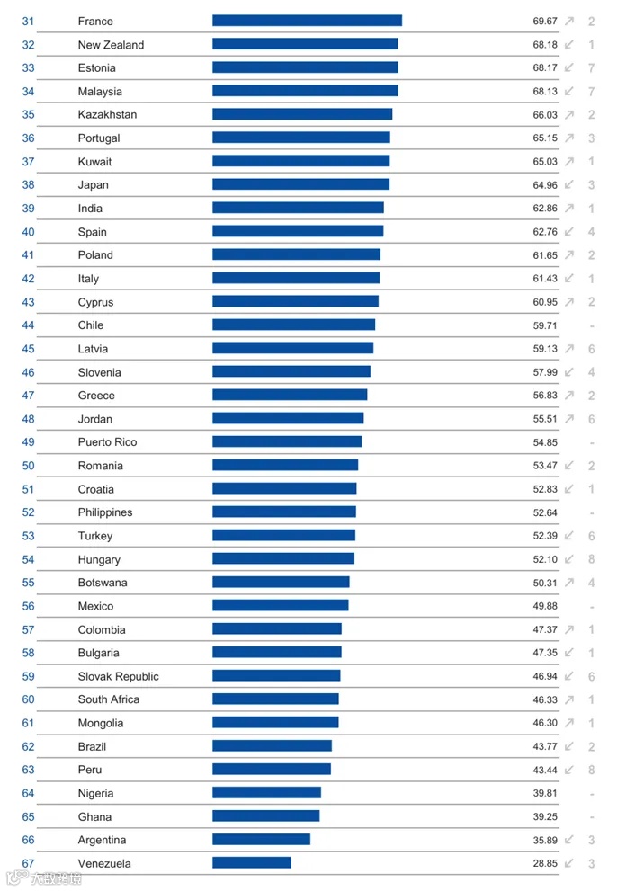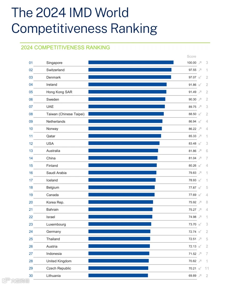 近日,瑞士洛桑国际管理发展学院(IMD)的最新研究对2024年全球最具竞争力的经济体进行了排名,共计有67个经济体列入排行。