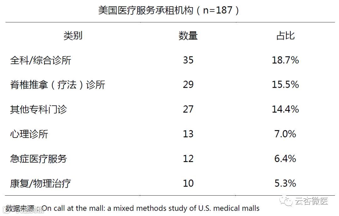 一项针对1395个含医疗业态商场的研究显示,62.4%设有验光店,17.3%设有牙科诊所。另有89个商场提供其他医疗服务,其中全科与推拿占比最高,分别为18.7%和15.5%,心理、急诊、康复、健身类服务占比均不足7%。