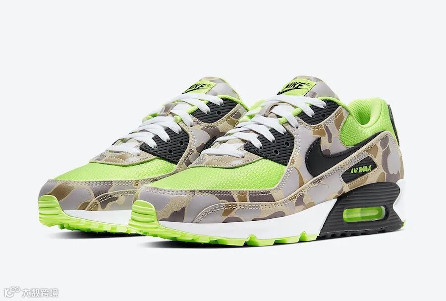 Nike携手日本知名球鞋名所Atmos,再度演绎经典Duck Camo迷彩系列。此次发布的Air Max 90 Green Camo继承2013年“Duck Hunter Camo”设计精髓,采用荧光黄网眼鞋面,搭配浅棕与灰色麂皮迷彩挡泥片,黑色橡胶嵌片增强质感。白色中底结合荧光黄Air Max气垫与黑黄外底,整体造型鲜明且富有层次。该鞋款已于5月15日登陆SNKR.com及各大Nike授权零售商。