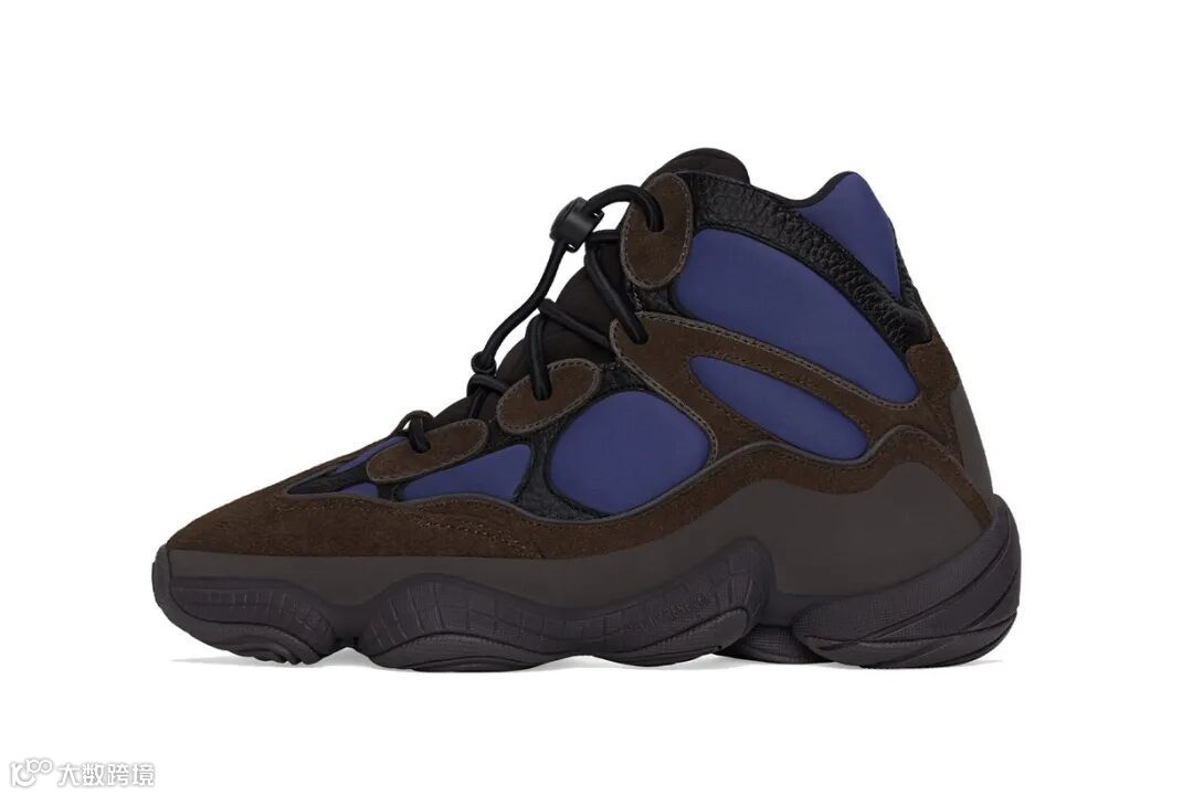 Yeezy系列推出全新adidas Yeezy 500 High Tyrian,以大地色系与军旅风格为灵感,适配多季节穿搭需求。鞋面采用紫蓝色潜水衣材质,搭配棕色麂皮装饰片与黑色荔枝皮细节,深灰Adiprene中底与同色橡胶外底提升实用性。该配色于5月16日在Yeezy Supply、adidas官网及授权零售商同步发售。