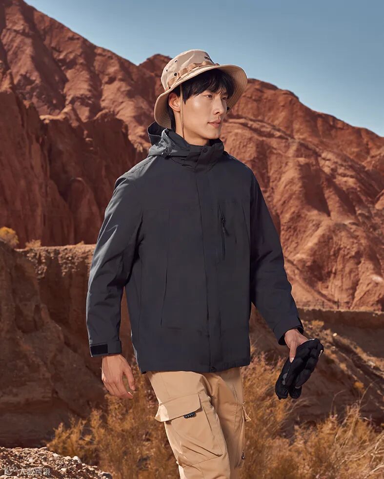 [河南小九]三合一冲锋衣的外层面料采用高品质防水透气材料,能够有效阻挡雨水渗透,同时保持内部干爽。这种面料还具有良好的耐磨性,即使在复杂的户外环境中也能持久耐用。
