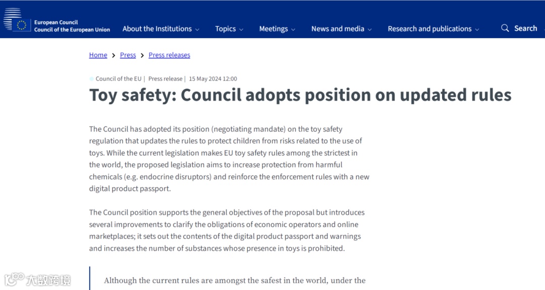此次法案引入数字产品护照相关内容,针对网络销售的产品同样适用,没有数字产品护照的玩具将无法进入欧盟市场。