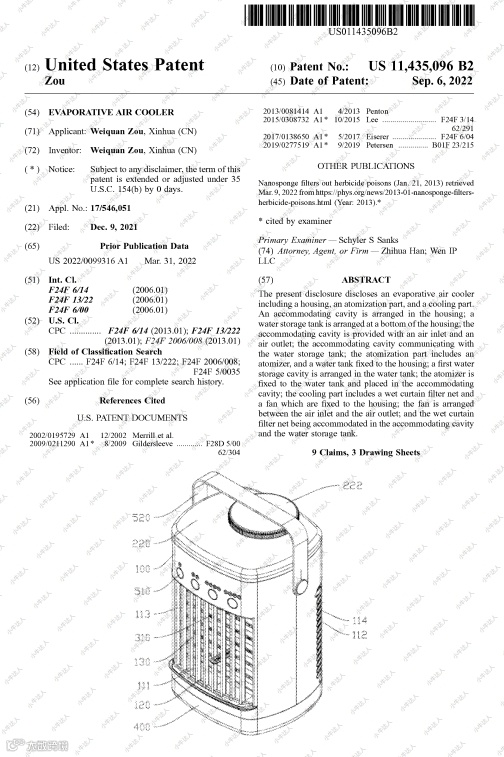 原告是我国一位卖家,这次维权的专利是便携式冷风机。这款产品能够将水添加进去,用特定的技术将水箱里面的水雾化,从而达到降温的作用。