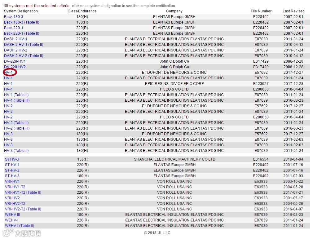企业可通过UL全球绝缘系统数据库查询符合要求的认证系统: