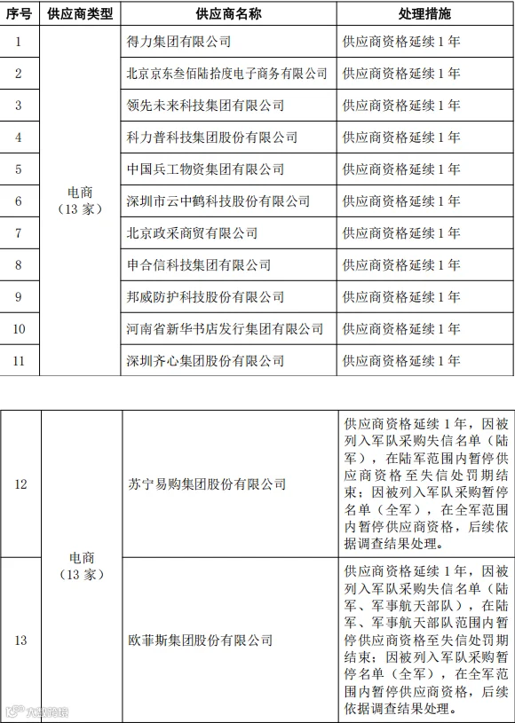 根据《军队自行采购平台供应商管理暂行细则》相关规定,2025年度供应商资格核验工作已于7月28日至8月29日完成。现将核验结果公示如下: