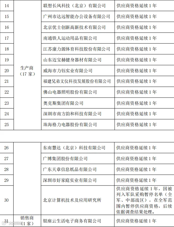 B2B政企采购根据《军队自行采购平台供应商管理暂行细则》相关规定,2025年度供应商资格核验工作已于7月28日至8月29日完成。现将核验结果公示如下: