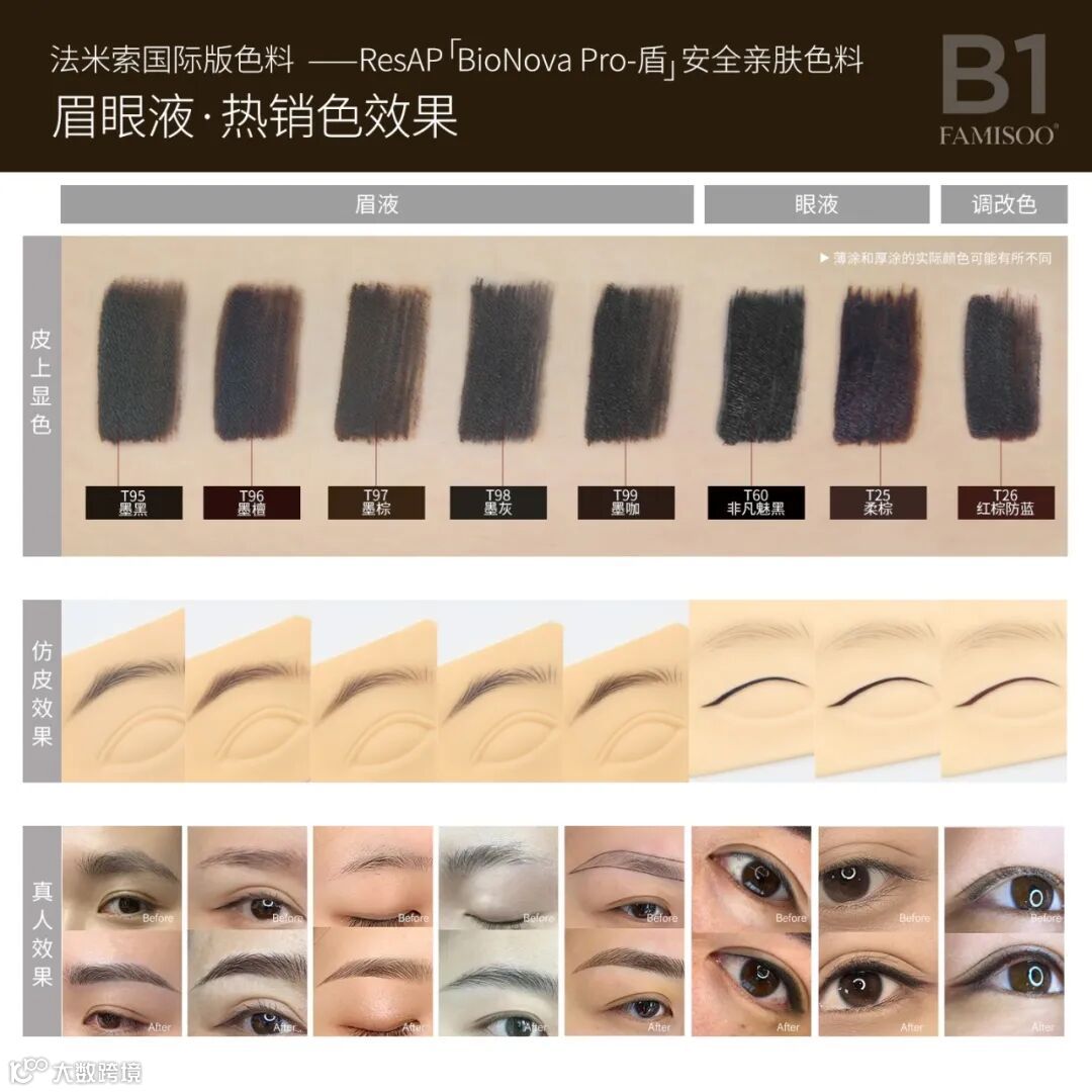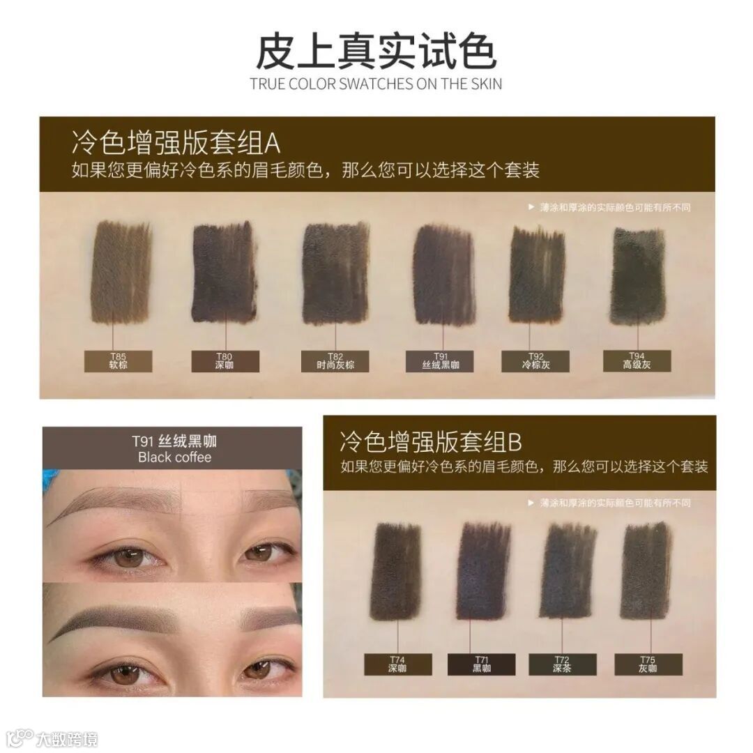 T85软棕、221巧克力棕则适用于眉头晕染。