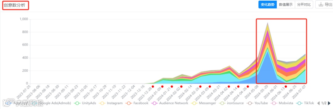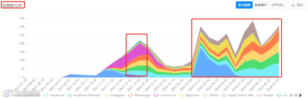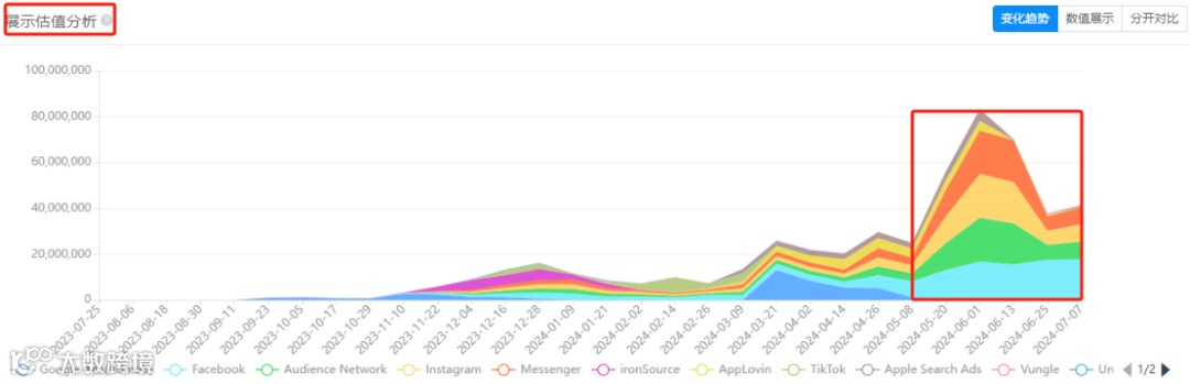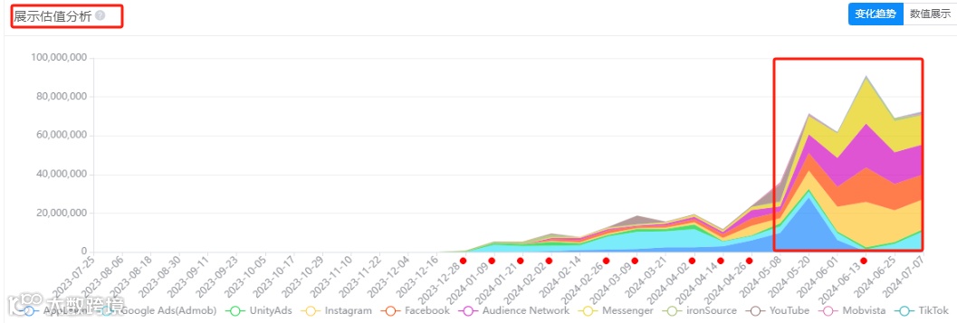 就展示估值而言,苹果端与安卓端都是在今年4月之后整体投放力度才明显增加,但前者6月中下旬开始小幅度降低投放,后者则一直保持高位。