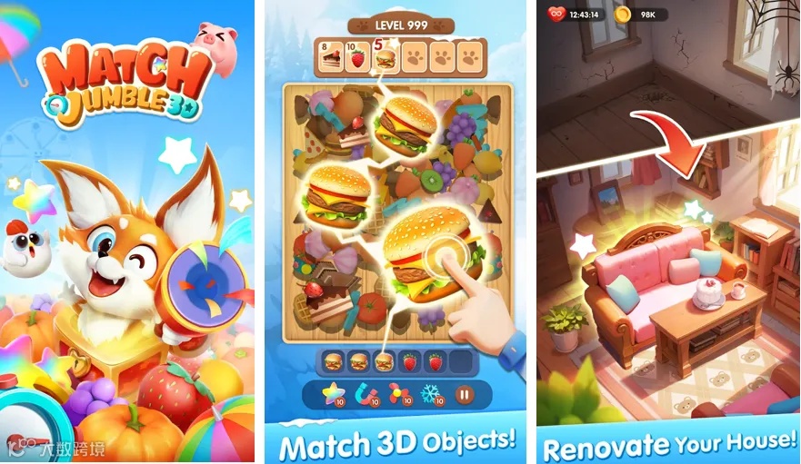 除了海外厂商关注堆叠三消,国内厂商自然也不例外,例如发行过《Tile Master》等五款产品,同时还储备了一款名为《Tile Town Match – Triple Match》的波克城市,以及今年1月海外上线新游《Match Jumble 3D》的三七互娱等。