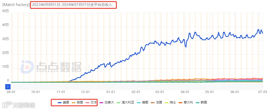 截至目前,其总流水在4.77亿元左右,其中美国占比高达72.84%位列TOP1。