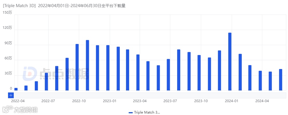 事实上,2023年以前,堆叠消除的王牌游戏一直是腾讯海外子公司Miniclip发行的《Triple Match 3D》,然而2023年开始,不少新品开始逐渐涌现,并且展现出了强大的实力。