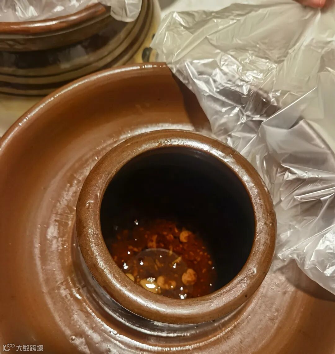 坛口用塑料布封盖严实,并用绳子沿坛口下的凹槽绑扎紧密。这样就可以确保坛子内部的豆瓣酱与外界的空气隔绝,避免氧化。封好的坛子放在阴凉干燥的地方存放3年,就可以取出来做调料了。有的人喜欢存放5年,和酒一样,年份豆瓣酱才是高端豆瓣酱,市场上很难买到。