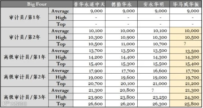 根据2020年一线城市审计线税前薪资数据(不含加班费、差补、证书补贴等),四大起薪看似不高,但年度调薪幅度显著,升职后涨幅可达30%。咨询岗薪资普遍高于审计岗。