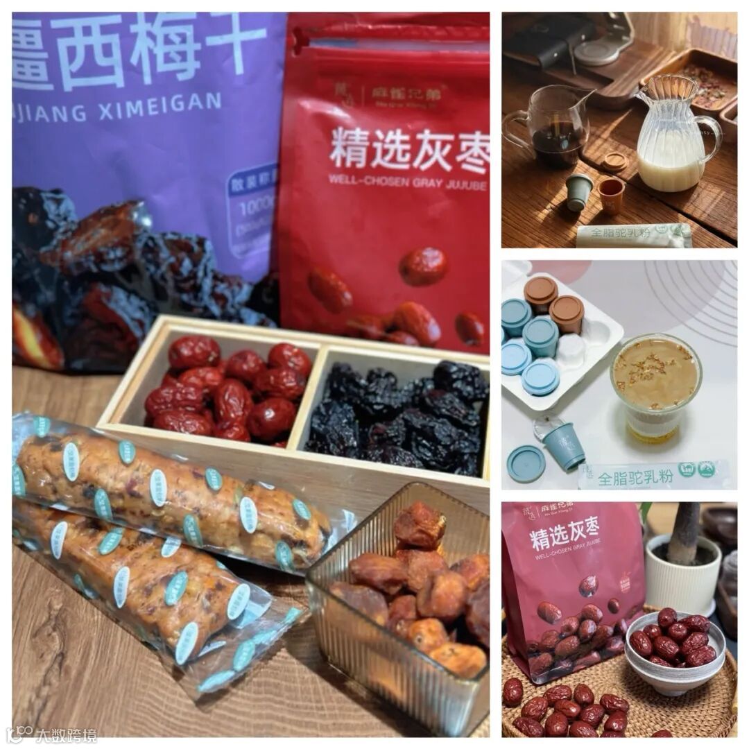 一根蒸玉米,两片大列巴,一杯驼奶,配上秋月梨和时蔬,简单几口,营养就很够了。到了办公室,要么冲一杯热乎乎的驼奶,要么调一杯驼奶咖啡,饿了就抓一把吊干杏、西梅干当零食……这一天,几乎是被彼选产品包围着。