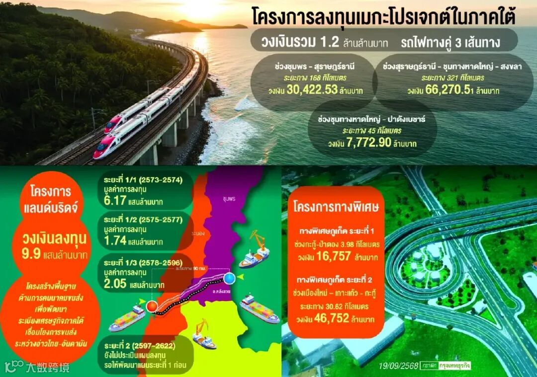 泰国阿努廷政府正持续推进国家基础设施政策,重点聚焦陆桥项目与南部经济走廊建设。泰自豪党致力于推动《南部经济走廊法案》(SEC)取得实质性进展,为总投资超1万亿泰铢的陆桥工程提供制度保障。